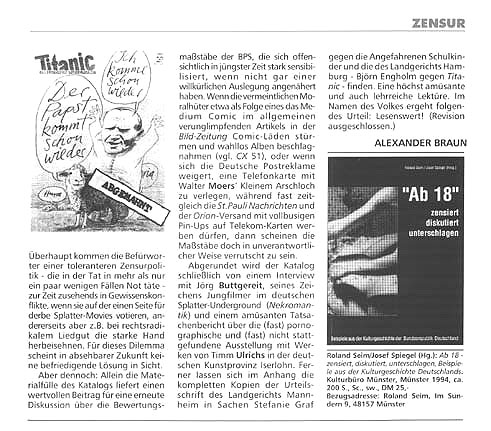 Rezension von Dr. Alexander Braun in "COMIXENE", Nr. 52, November 1994, S. 86f.