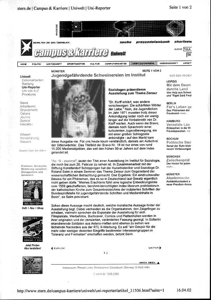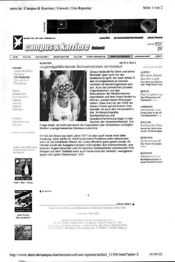 Artikel bei www.stern.de/campus-karriere/uniwelt/uni-reporter (2002)